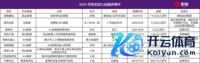 注:公司名大小按融资金额决定,未走漏融资金额的公司未作念统计 2024 年磨真金不怕火行业共发生 81 起投融资事件,波及金额 25 亿元。 排行前九大的投融资事件有: 2024 年 3 月,海航航空集团以 7.9 亿的价钱竞购奏凯三亚航院的母公司海南睿航人人磨真金不怕火产业投资有限公司。 雷鸟创新得到 5 亿元 B + 和 B++ 轮融资,由嘉兴南湖科盈、嘉兴南湖嘉新创禾、无锡惠开正合、无锡惠山科创等机构辘集投资。雷鸟创新在 CES 期间,还负责推出雷鸟 V3 AI 拍摄眼镜,正面向 Meta 智能眼镜「打仗」。 精确学完成新一轮 2 亿元融资,投资方为阿里巴巴集团,「超拟东谈主 AI 一双一淳厚」恰是基于阿里的通义模子打造的磨真金不怕火垂直模子所研发。 传智磨真金不怕火拟 1.06 亿元收购优优汇联 51% 股份。 鲸鱼机器东谈主完成第 7 轮融资,由上海久事集团、陆家嘴集团、上文投、五星体育传媒等多个国资平台共同竖立的上海体育产业基金参与了本轮融资,融资金额超过 1 亿东谈主民币。 宾果智能完成近亿元融资,投资方为三合成本,将用于其在东谈主工智能磨真金不怕火领域的本事研发和商场拓展。 多助公考布告完成 6000 万元 A 轮融资,企业估值 3 亿元。 江苏超等欧克东谈主工智能科技有限公司得到深圳市盛联投资控股有限公司的 5700 万元 A 轮融资。 中辘集众磨真金不怕火科技集团完成冠峰永越的 A 轮 5000 万元投资。