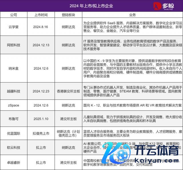 海南睿航被海航航空集团并购的金额是最高的,其旗下还控股三亚航空旅游劳动学院(简称三亚航院)。三亚航院是原海航集团创办的全日制高档劳动院校,经海南省政府批准并报磨真金不怕火部备案,主要为海航航空主业提供东谈主才撑握。这次收购是海航航空集团在完成收歇重整后,进一步完善航空产业链布局的热切举措。通过这次交游,海航航空集团将再行整合磨真金不怕火板块,推动「产教和会」,为海南自贸港的航空业和当代服务业发展提供东谈主才保险。 此外,海航航空集团预备在接办三亚航院后,插足十亿级资金用于扩大办学范围、更新教学斥地、踏实师资队列,并股东专升本磨真金不怕火和航空专科东谈主才培养。 早在 2024 年 12 月,传智磨真金不怕火收购优优汇联 51% 股权,成为职教并购「风向标」。行为一家以做事为导向的劳动磨真金不怕火机构,通过并购优优汇联,传智磨真金不怕火将有契机进一步丰富其数字化劳动磨真金不怕火居品线,拓展新的业务领域。 本年 6 月,北大青鸟环宇拟以 1305.415 万元收购北京青鸟劳动磨真金不怕火科技发展有限公司 70% 股权。这次收购旨在收拢劳动磨真金不怕火行业的发展机遇,讲理中国精深的高中及大学毕业生对劳动磨真金不怕火的需求,通过多元化业务布局扩大集团收入开首并为股东创造呈报。 2、2024 年共有上市 / 拟上市企业 9 家 比年来,磨真金不怕火行业的在线化、数字化趋势显明,赴好意思 / 赴港上市的企业多聚焦在任业磨真金不怕火和磨真金不怕火科技等细分领域。 2024 年,上市 / 拟上市的企业共有 9 家,其中 5 家公司奏凯在好意思股与港股上市,云学堂、网班科技、纳米盒、zSpace 在纳斯达克奏凯上市,越疆科技在港交所上市。优蓝海外拟通过 SPAC 模式上市;软云科技也于日前递交招股书,准备在好意思国纳斯达克上市;「聪惠树」母公司非常睿新也向港交所递交招股书,拟在香港主板挂牌上市。 2025 年年头,布鲁可在港交所上市,堪称「中国版乐高」,踏进中国第一、宇宙第三大拼搭扮装类玩物公司之列。