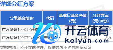 本站音尘,2月13日发布《广发深证100交游型通达式指数证券投资基金蚁合基金分成公告》。本次分成为2025年度的第1次分成。公告深远,本次分成的收益分派基准日为1月1日凯时体育游戏app平台,禁绝分成有筹画如下: